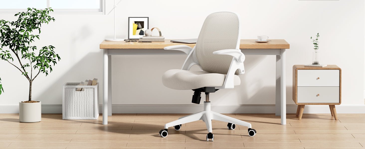 If you're looking for an office chair that can save space, then this is the perfect option for you! It has armrests that can be flipped up so that you can slide the desk chair under the desk when not in use. Now you don't have to worry about your limited space! Get this space saving desk chair and enjoy the extra room!