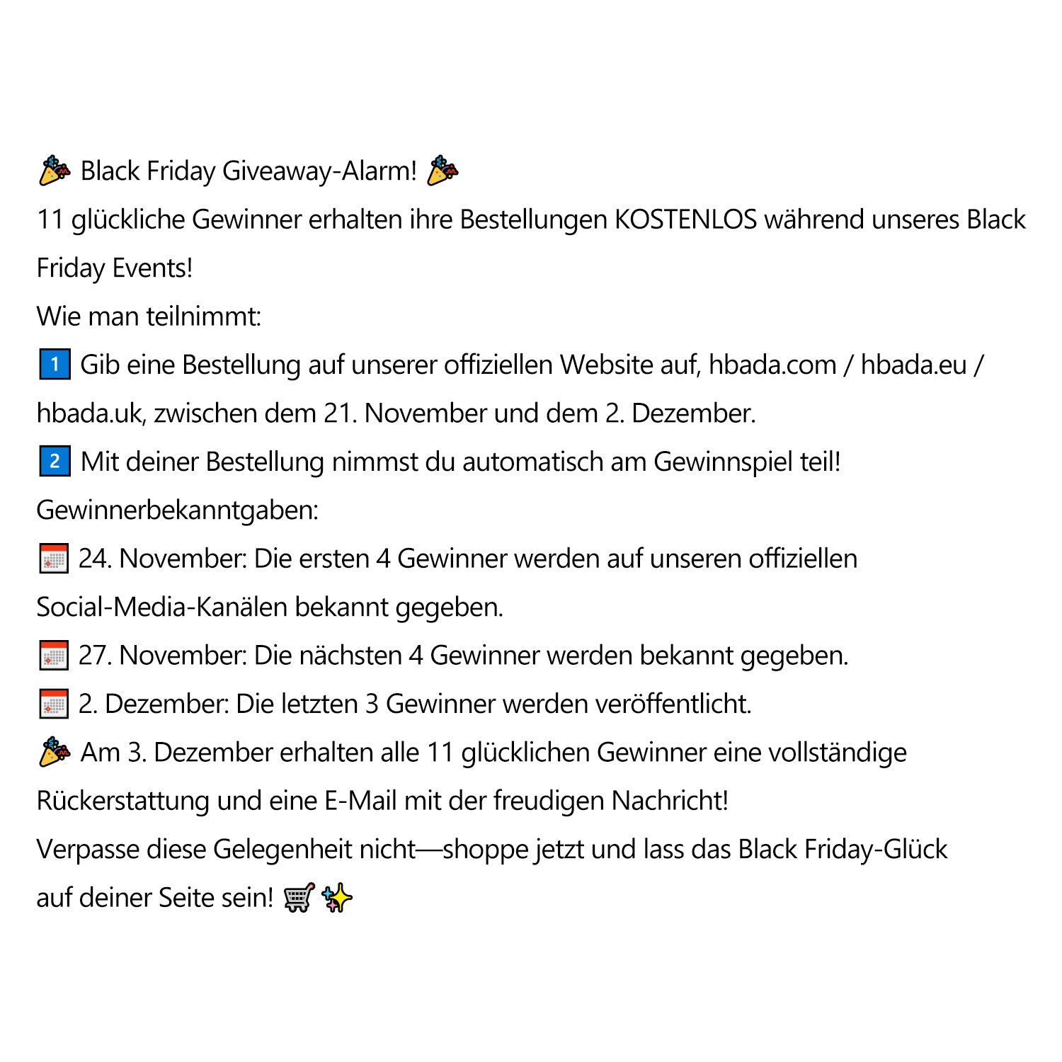 11 KOSTENLOSE BESTELLUNGEN, ALLES FÜR DICH! VOM 21. NOVEMBER BIS 2. DEZEMBER, NUTZE DEINE CHANCE ZU GEWINNEN!