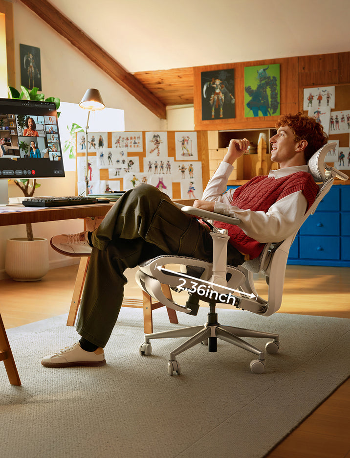 The lumbar support features a multi-dimensional dynamic system, engineered with lateral twist, longitudinal pitch, and vertical bend adjustments. Precision-tailored for varied postures whether leaning forward in focus, hunching over work, reclining at rest, or turning casually, it adapts to your spine’s natural curve, delivering steady, consistent support through every movement.