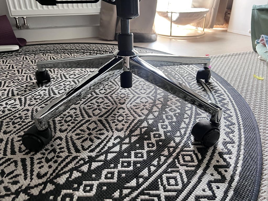 Eines der besten Merkmale dieses Stuhls ist seine ergonomische Gestaltung, die dafür sorgt, dass ich mich während längeren Arbeitsperioden wohl fühle. Die verstellbare Rückenlehne und die Armlehnen lassen sich leicht einstellen und bieten zusätzlichen Komfort. Der Stuhl rollt dank der hochwertigen Rollen auch leicht über den Boden bzw. Teppich.