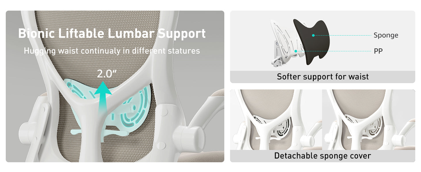 2 Lumbar Support provides customized ergonomic support relieving your fatigue from sitting for a long time.