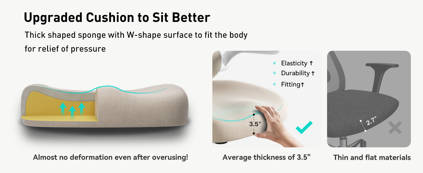 Thick seat cushion is not easily deformed and is soft and comfortable; the Mesh back keeps air circulation extra comfy.