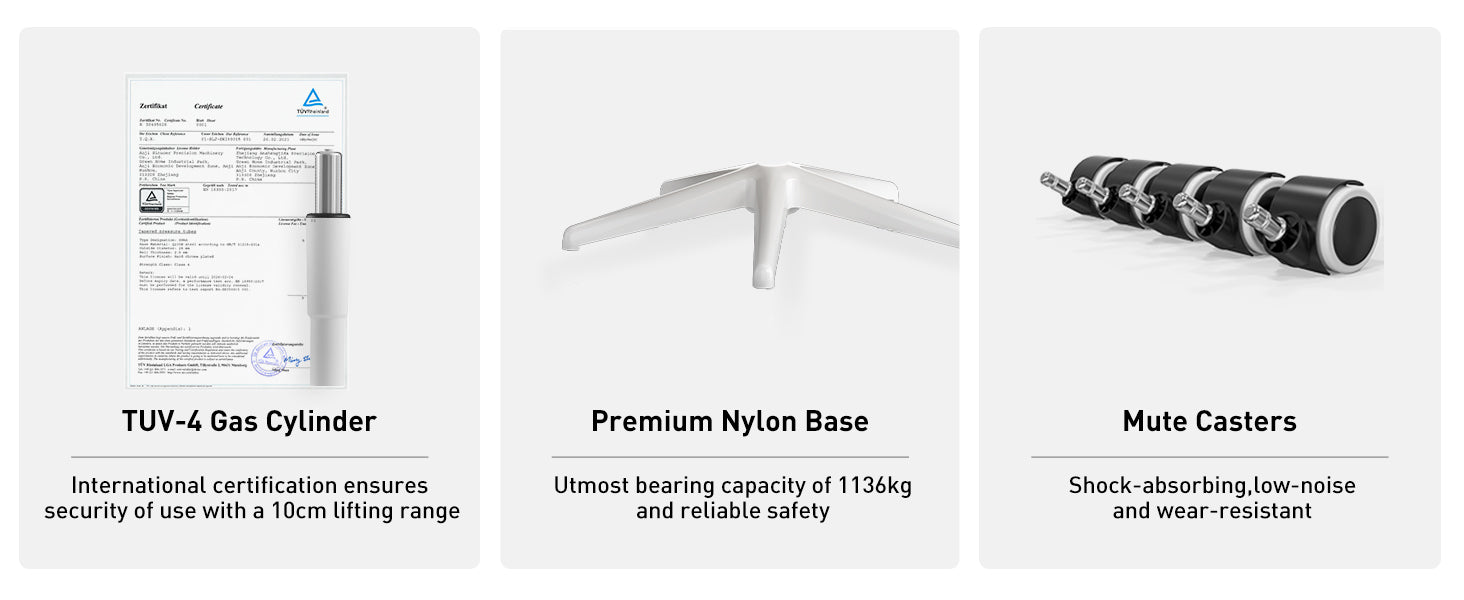 High bearing capacity base with smooth and silenced rolling wheels, Max Capacity 250lbs.