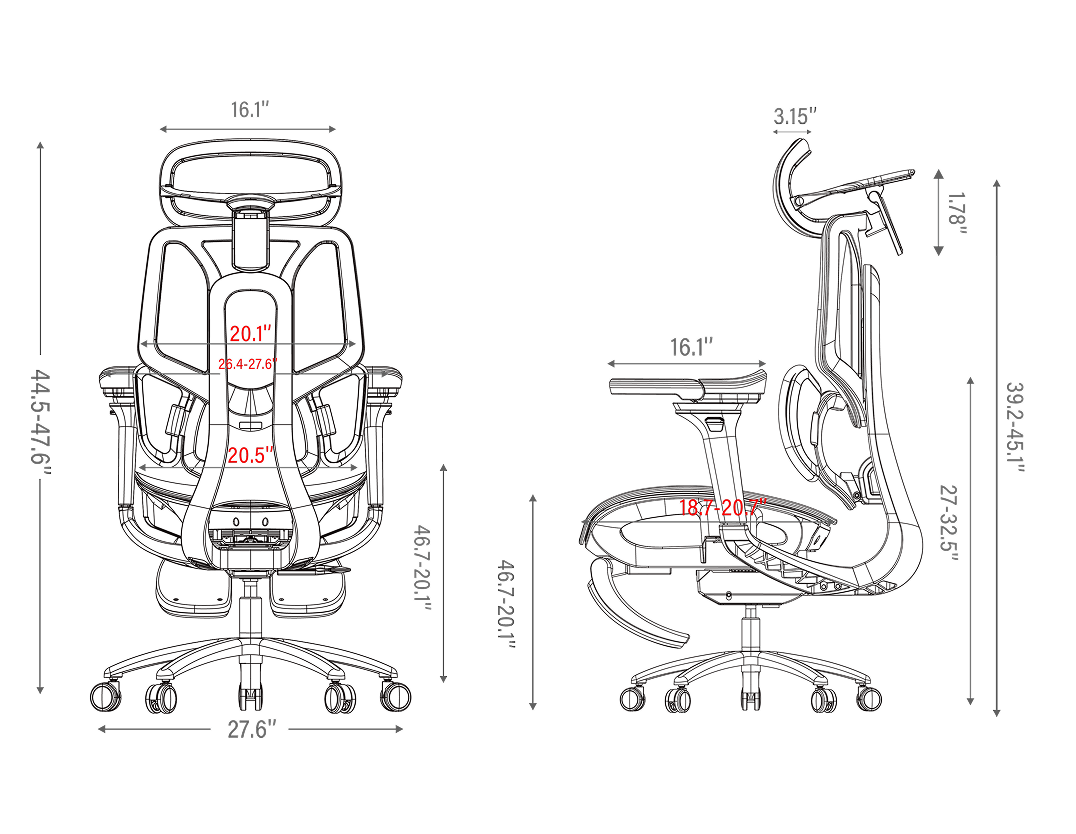 - You can adjust every inch of the chair, lumbar, sit (forward and backwards), head rest, foot rest, height, and arm rest.